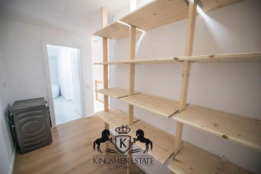 Duplexul este compus la primul palier, dintr-un living cu bucatarie generoasa deschisa, o baie si o terasa generoasa cu acces catre living si bucatarie.La palierul superior se afla doua dormitoare, un dressing spatios si o baie ce le deserveste.